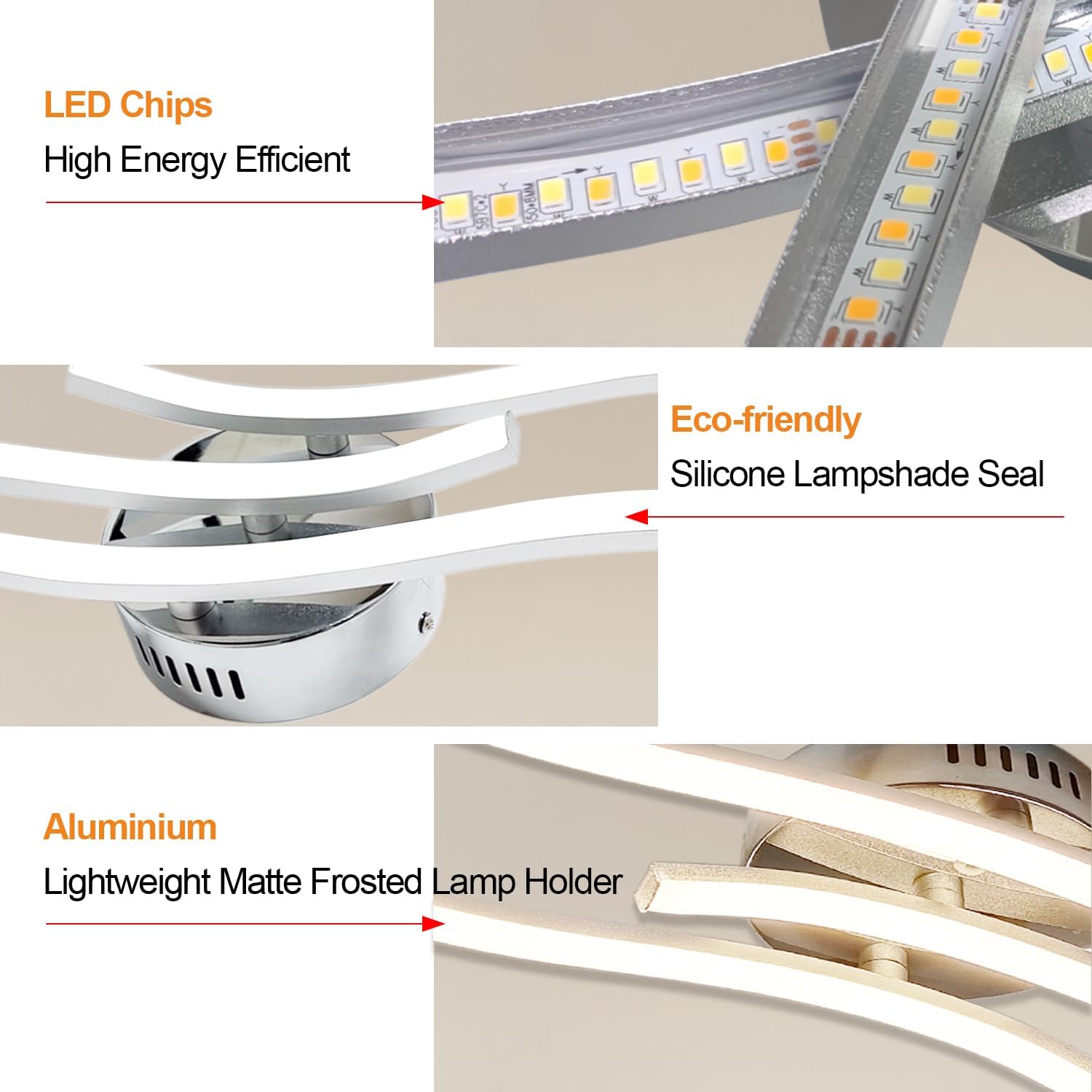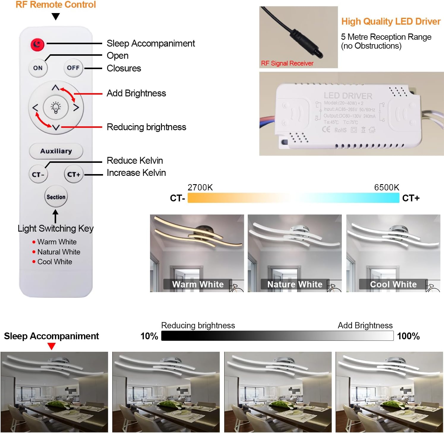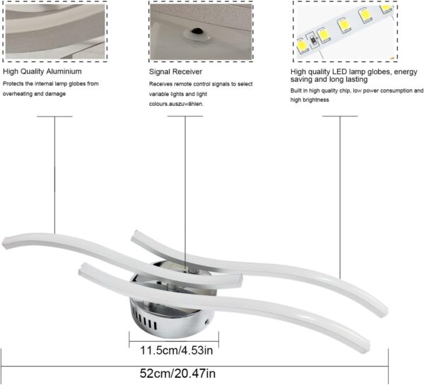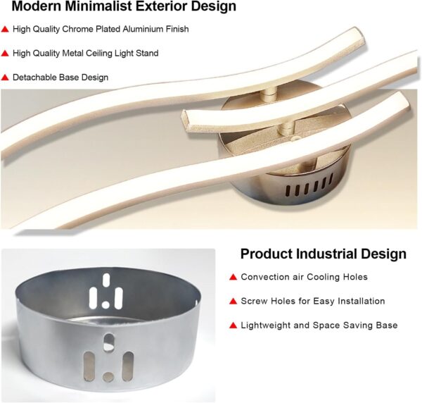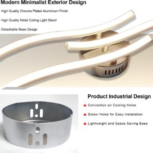 3 Way Parallel 22W LED Ceiling Light with Remote Control – Chrome Finish Metal Ceiling Lighting for Living Room, Bedroom, Hallway