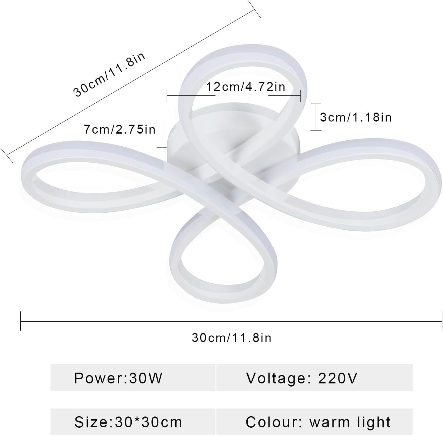 • ⌘ LED ceiling light size: L30*W30*H7cm (11.8*11.8*2.75 inches) power: 30W, colour temperature: 3000K-3500K, operating voltage: 220V-240V, average life: 50000 hours, lighting area: 15-20㎡