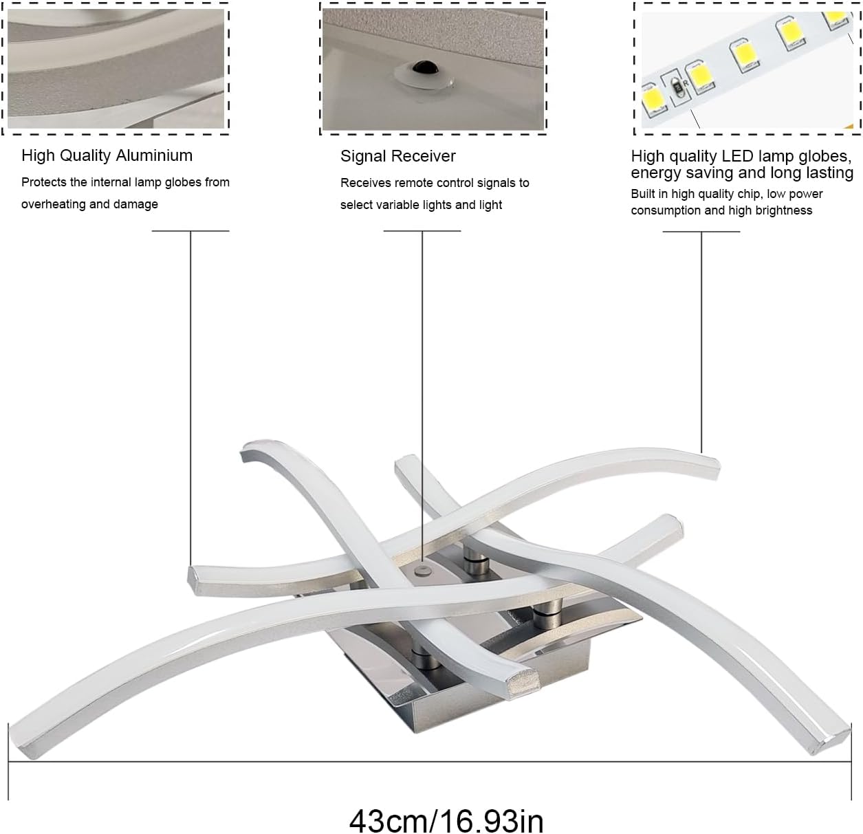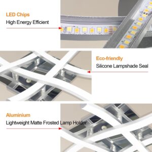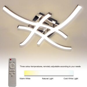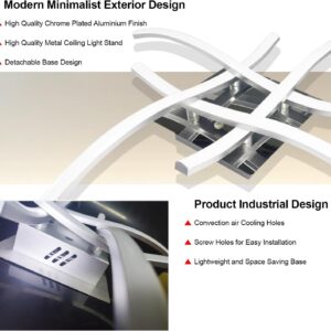 4 Way Crossed LED Ceiling Light – 28W 2800LM Chrome Finish Metal LED Ceiling Lamp for Living Room, Bedroom, Hallway (Remote Included)