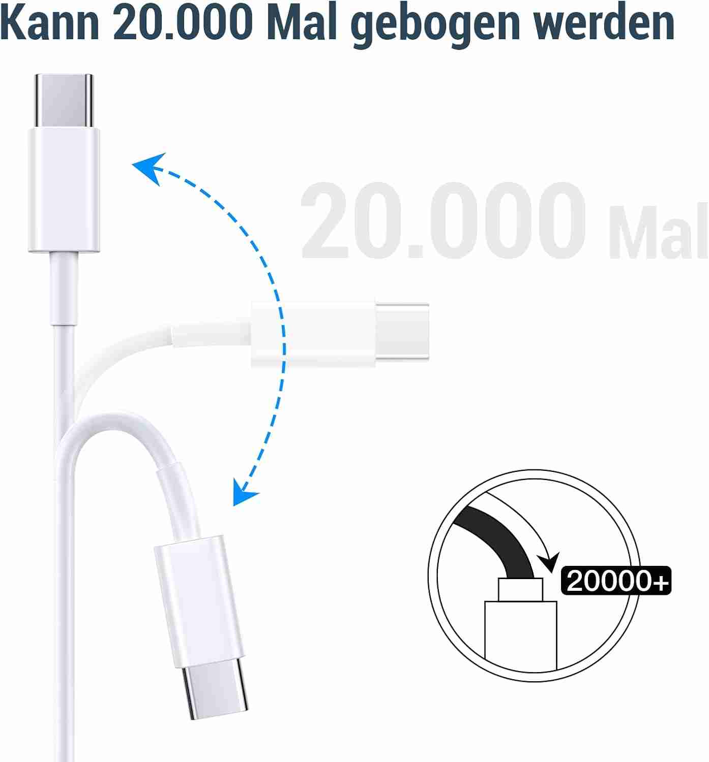 Excellent Durability: The USB C to C Charging Cable have undergone rigorous laboratory testing and can withstand more than 12,000 bends.