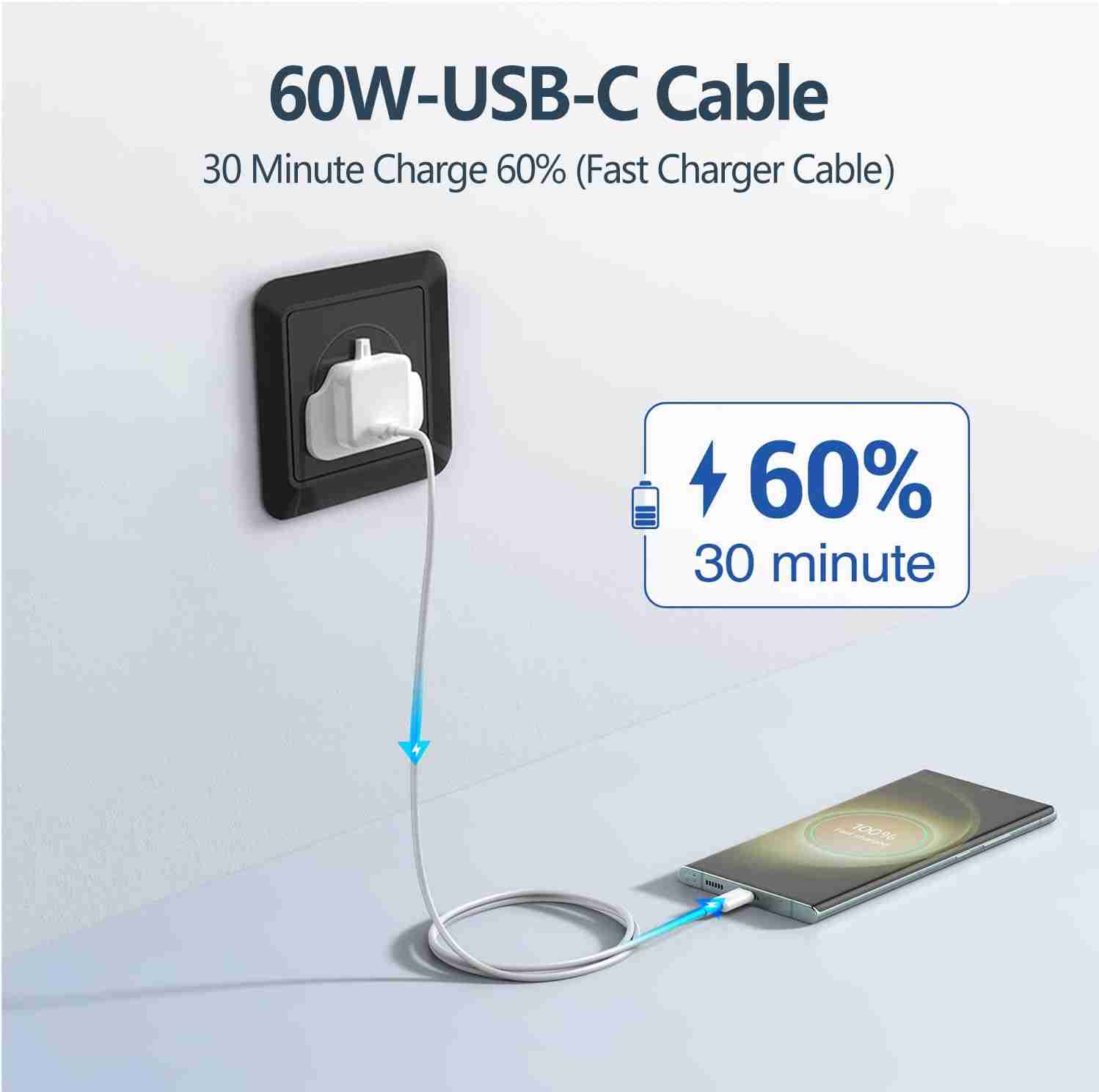 60W Fast Charging USB-C Cable For Apple iPhone 15/15 Plus/15 Pro/15 Pro Max, iPad Pro/Air/Mini, MacBook Air Pro 2020,Samsung Galaxy S23