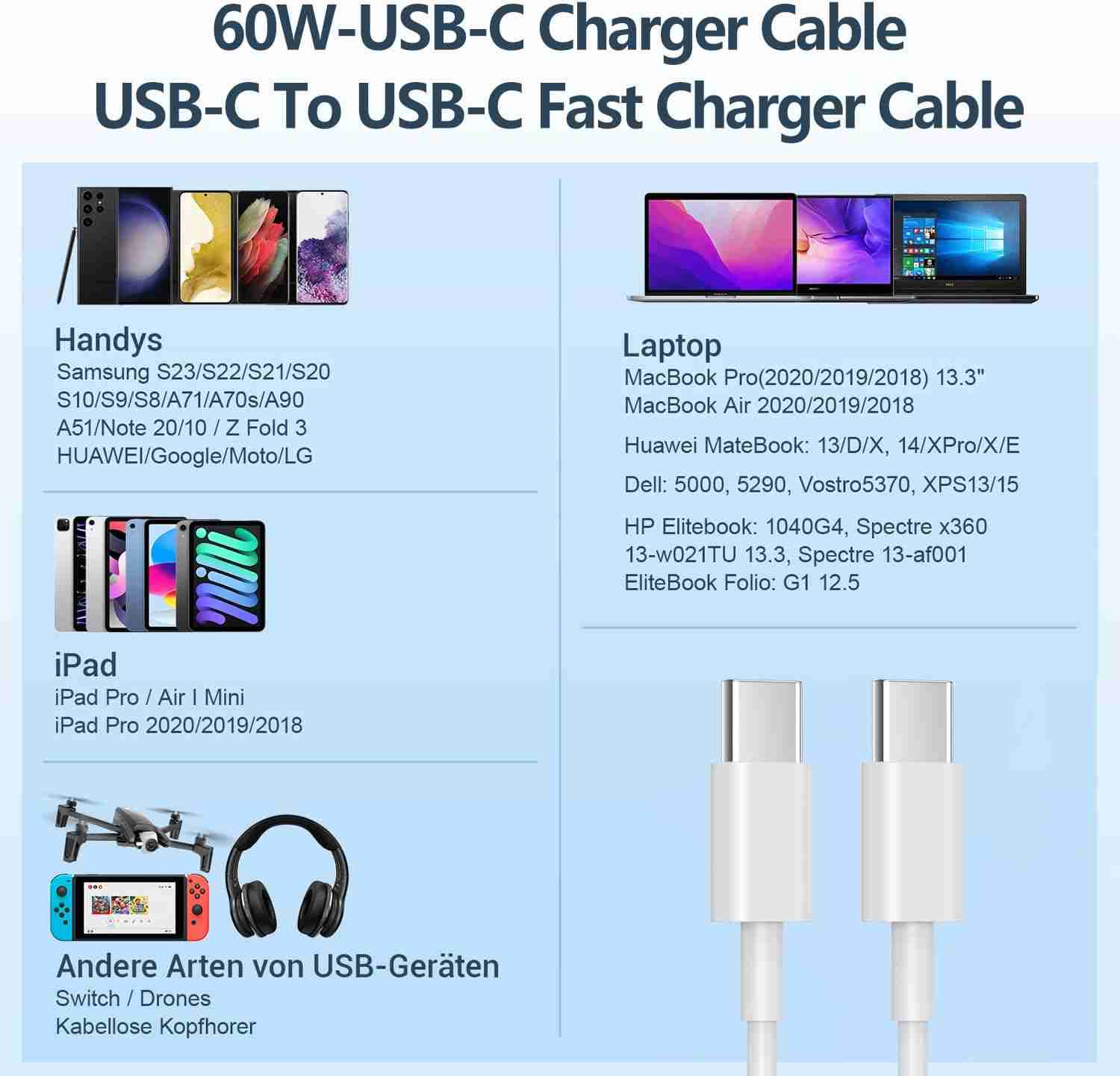 USB C charger cable 【Supports Power Delivery】: Get up to 60W high-speed charging for all of your USB-C devices when paired with a USB-C charger. 【Built to Last】: A hard-wearing nylon exterior and a bulletproof fiber core combine to create a cable that can withstand up to 12,000 bends USB C 【What You Get】: 1M New USB-C to USB-C Cable our friendly customer service.