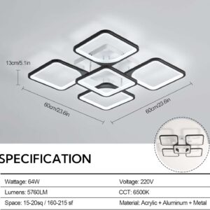 64W Ceiling Lights for Bedrooms – Modern 5 Square Chandeliers Ceiling Lamp, 6500K Semi Flush Light Fittings for Living Room