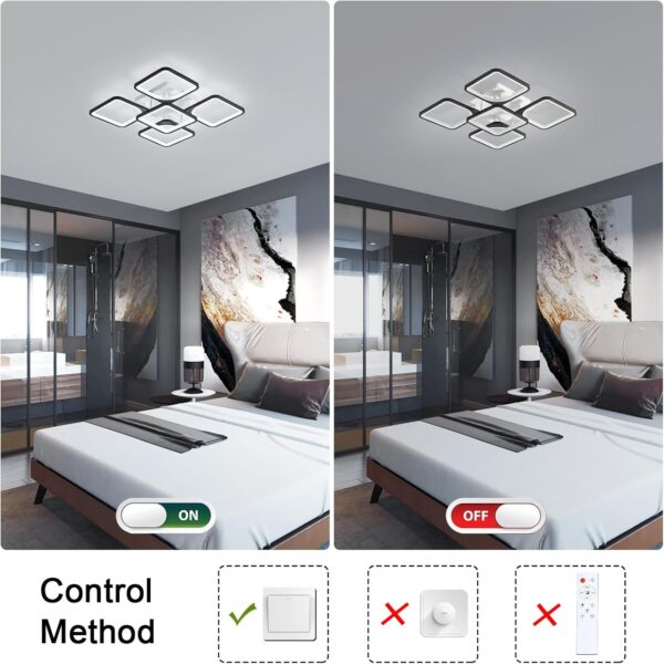 - The LED ceiling light has a double layer design. The 5 square lamps are placed in a 4+1 shape, which is simple but not simple, the combination of art and simplicity creates a distinctive beauty.