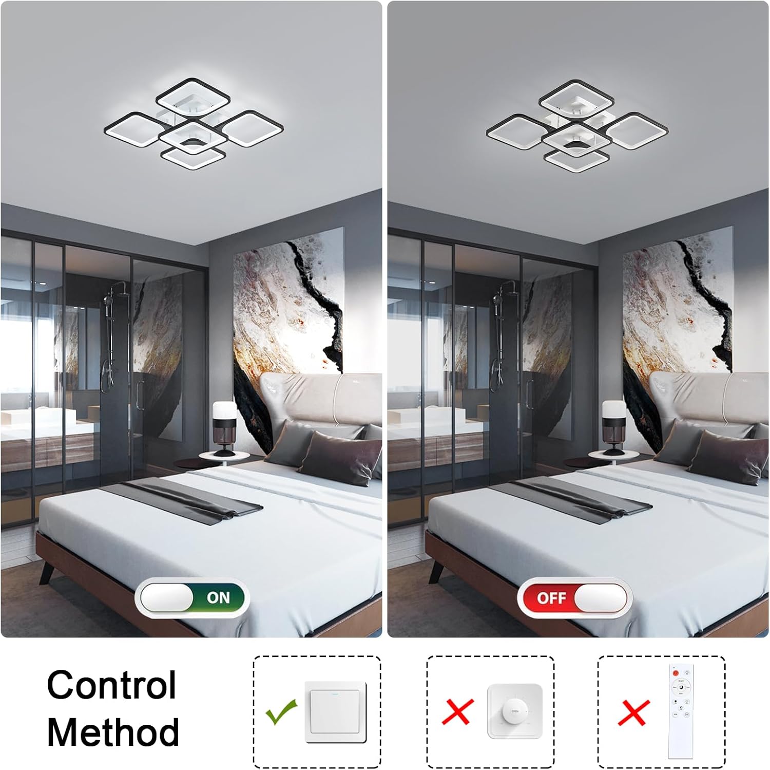 64W Ceiling Lights for Bedrooms – Modern 5 Square Chandeliers Ceiling Lamp, 6500K Semi Flush Light Fittings for Living Room