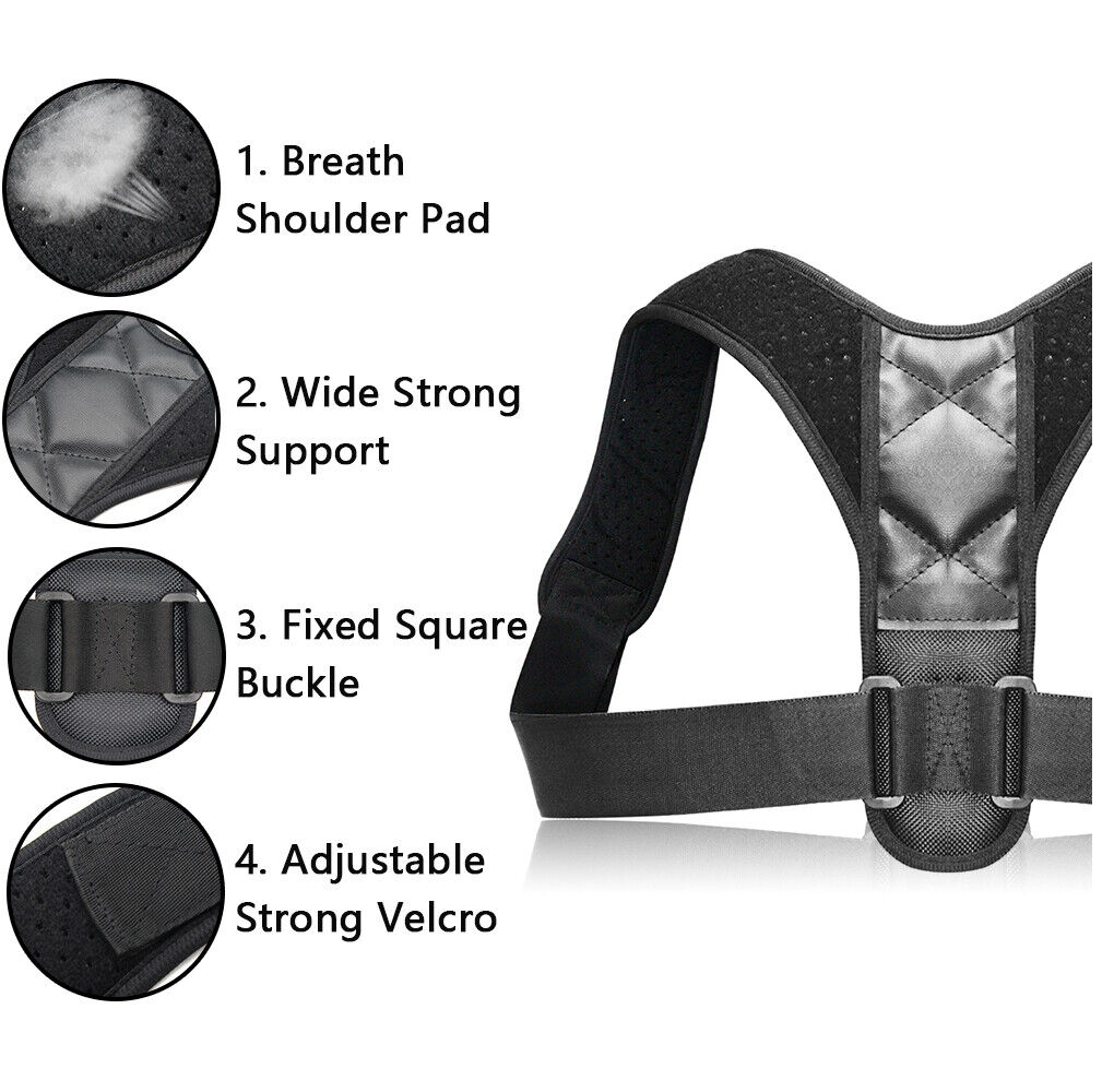 Our Back Posture Corrector is ideal for both men and women seeking to improve the alignment and structure of their back. This back posture corrector offers relief from chronic back pain and muscle tension. It features two adjustable straps for easy application and a secure velcro closure. Our back straightening posture corrector is the ideal solution for individuals experiencing back pain, especially after long hours of work. POSTURE CORRECTOR WITH BACK BRACE Featuring an adjustable Velcro strap for clavicle support Our Posture Corrector is designed for both men and women, promoting a natural, upright posture. This can help alleviate neck, shoulder, and upper back pain while encouraging the correction of poor posture habits. It provides effective assistance and robust support to alleviate back, neck, and shoulder pain caused by improper posture.