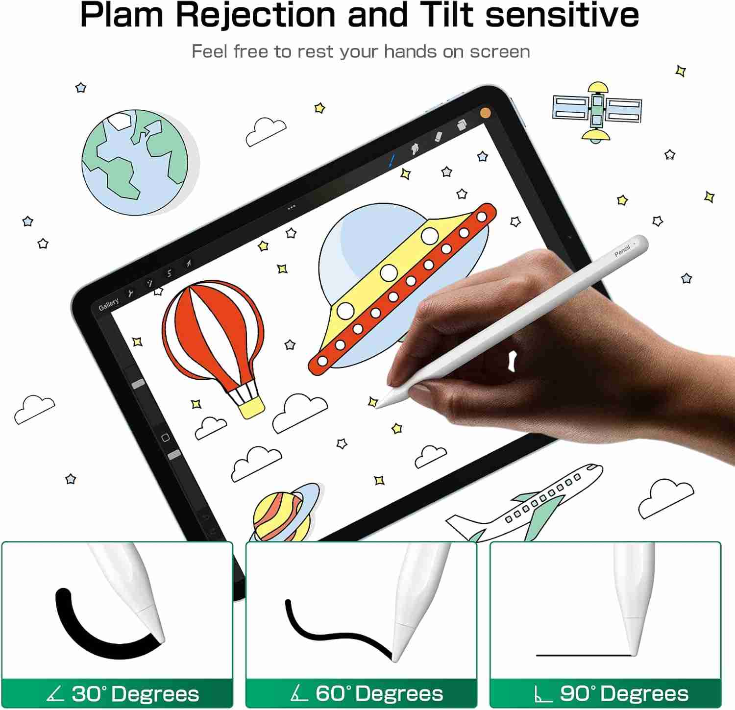 • Palm rejection function, freely place your hand on the iPad screen.