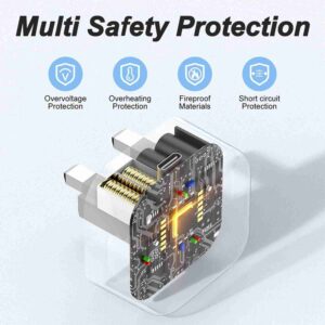 - 【High Safety Factor】The charger cable and Plug have overheating protection. It can prevent short circuit, Current overload and overcharging. The protection function will automatically start when the temperature exceeds the safe range, please feel free to use it.