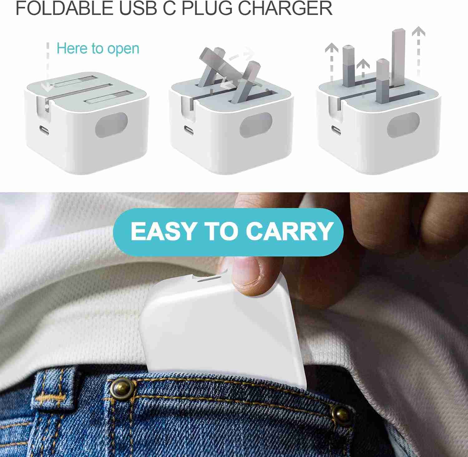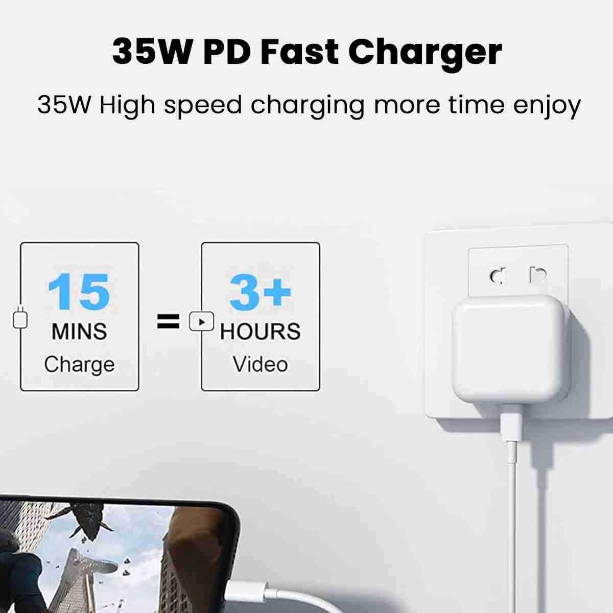 - 【What You Get】1 × 35W Fast Charging Plug, 1 × 1M USB C to Lightning Charging Cable.