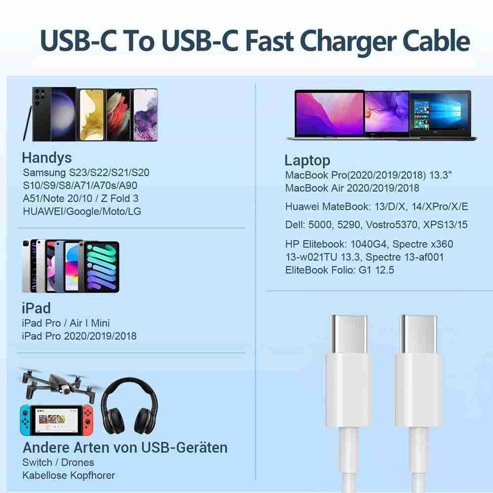 Excellent Durability: The USB C to C Charging Cable have undergone rigorous laboratory testing and can withstand more than 12,000 bends.