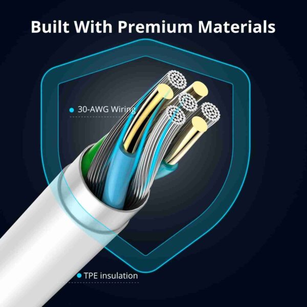 Ensure fast charging speed up to 2.4A and stable data transfer. The cable is made of high quality tinned copper and power cord, and covered with special insulation material to reduce the risk of short circuit.