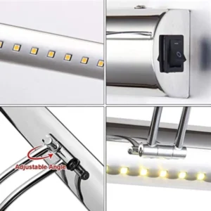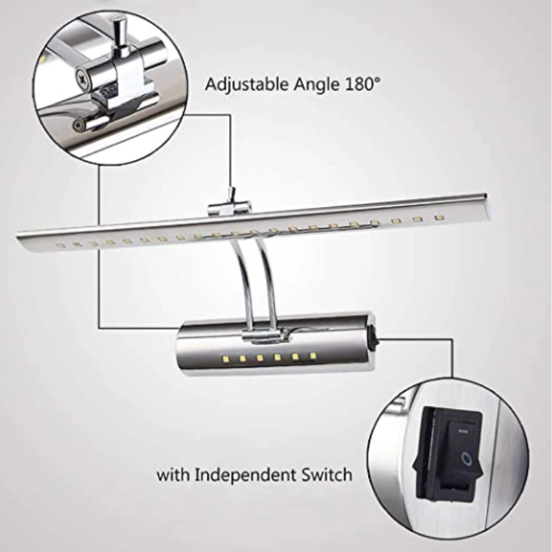 The mirror lamp is splash-proof, making it suitable for use in wet areas like bathrooms. Its durable construction ensures longevity and it requires minimal maintenance. The lamp is easy to install and can be mounted onto any bathroom mirror or wall. The flexible arm and swivel head allow you to adjust the light to the perfect angle for your needs.