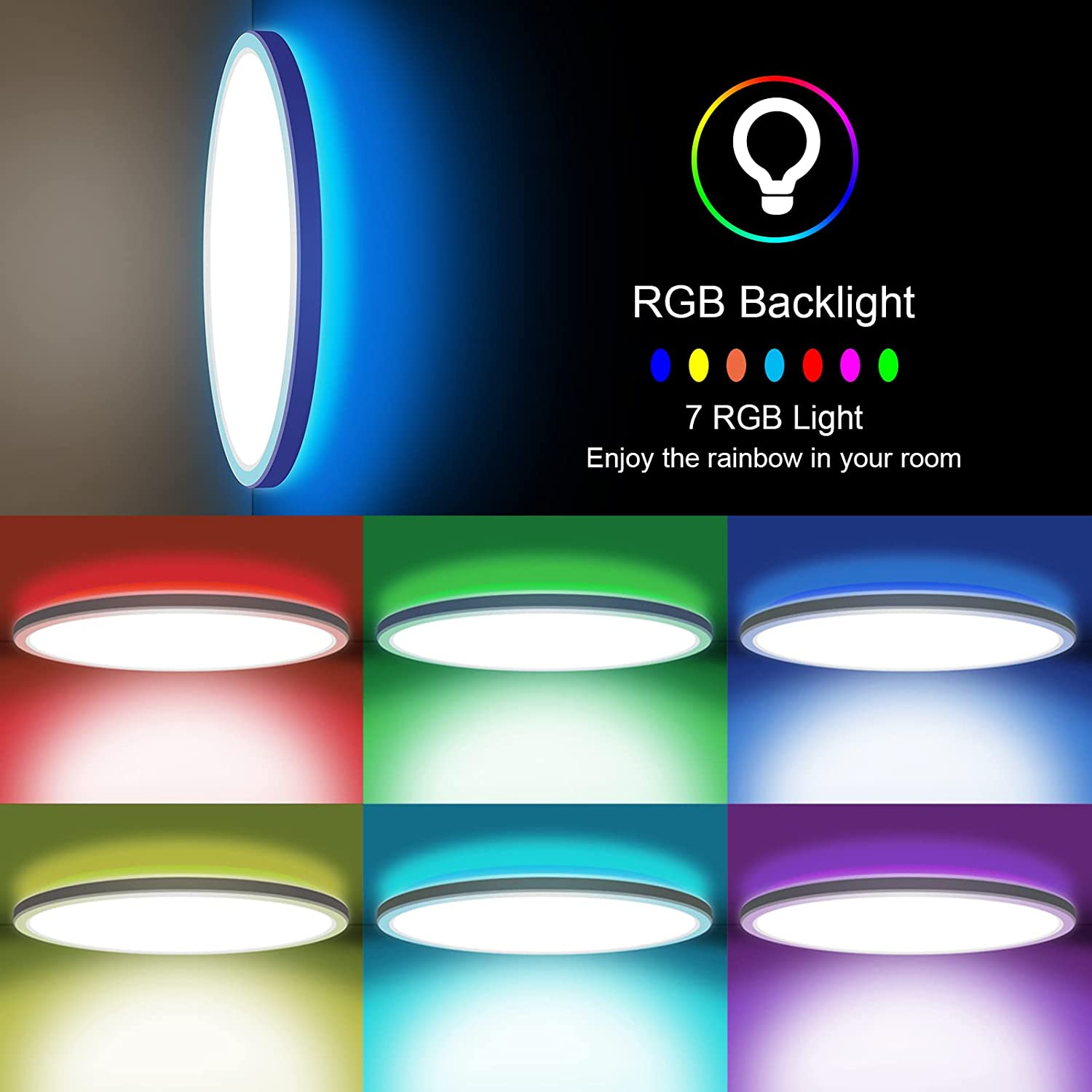 LED Ceiling Light with RGB Backlight, IP54 Waterproof Bathroom Light, Remote Control Modern Flush Ceiling Light