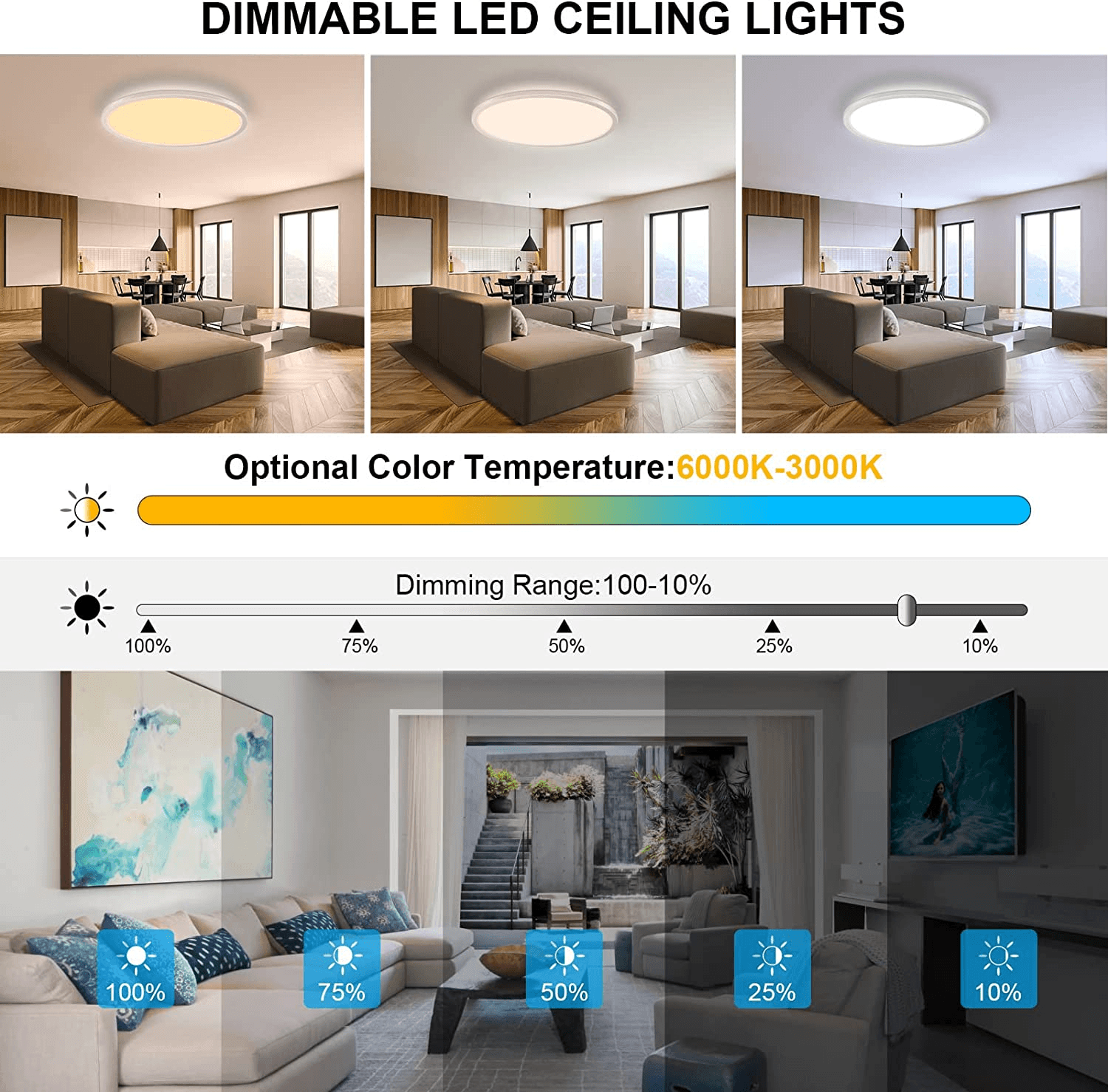 Color Temperature: 3000k-6000k Color Rendering Index(CRI): >80 Diameter: φ30cm (11.8in) Thickness: 2.5cm (0.98in) Waterproof & Dustproof: IP54 Life span: 50000 Hours |
