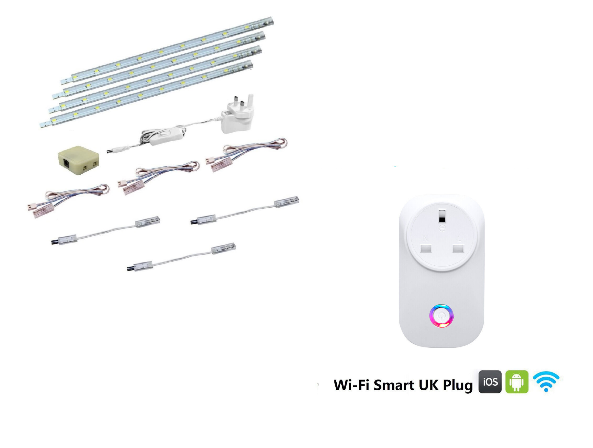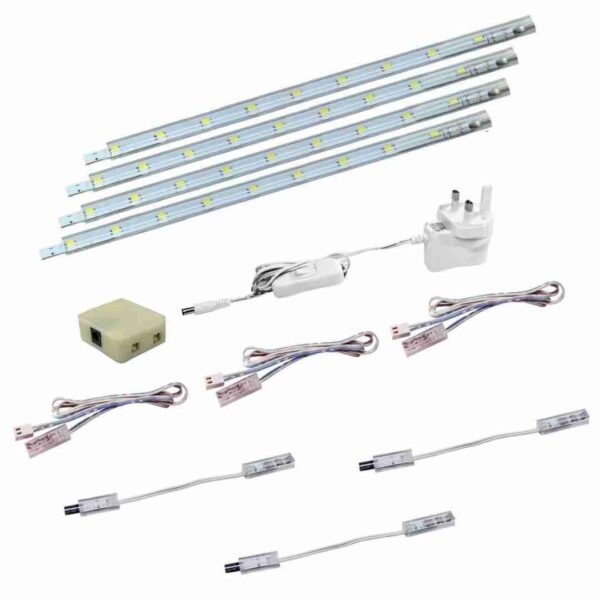 4 x 30cm Plug-In LED Under Kitchen Cupboard Cabinet Strip Lights Day Light Cool White