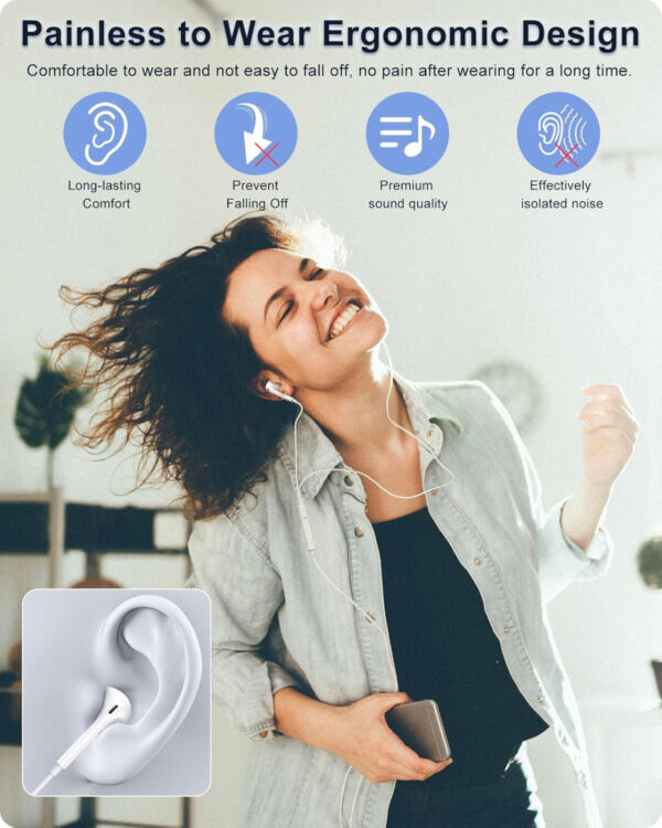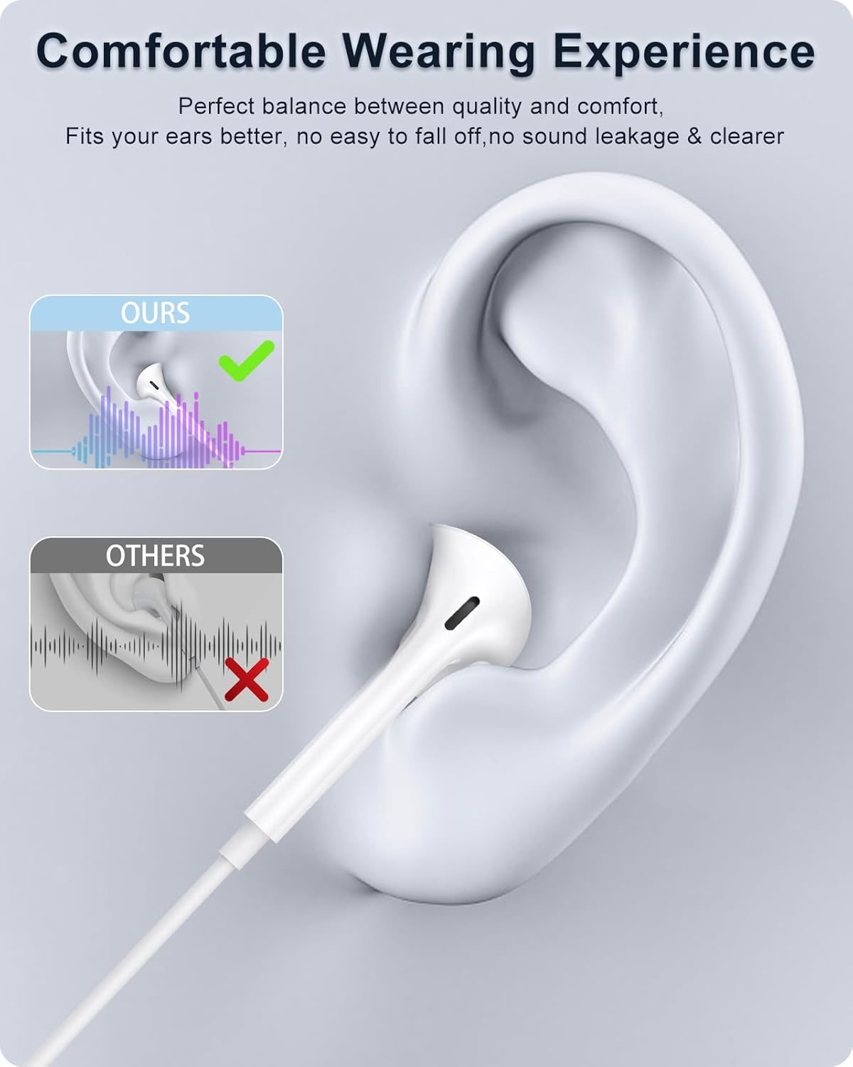 - 【HIGH QUALITY SOUND】: Our iPhone earphones feature lightweight in-ear materials and ergonomic design to minimize background noise and sound leakage. Allowing you to enjoy clear, loud, high-quality sound while freeing your hands. Perfect for work meetings, running, training and more.
