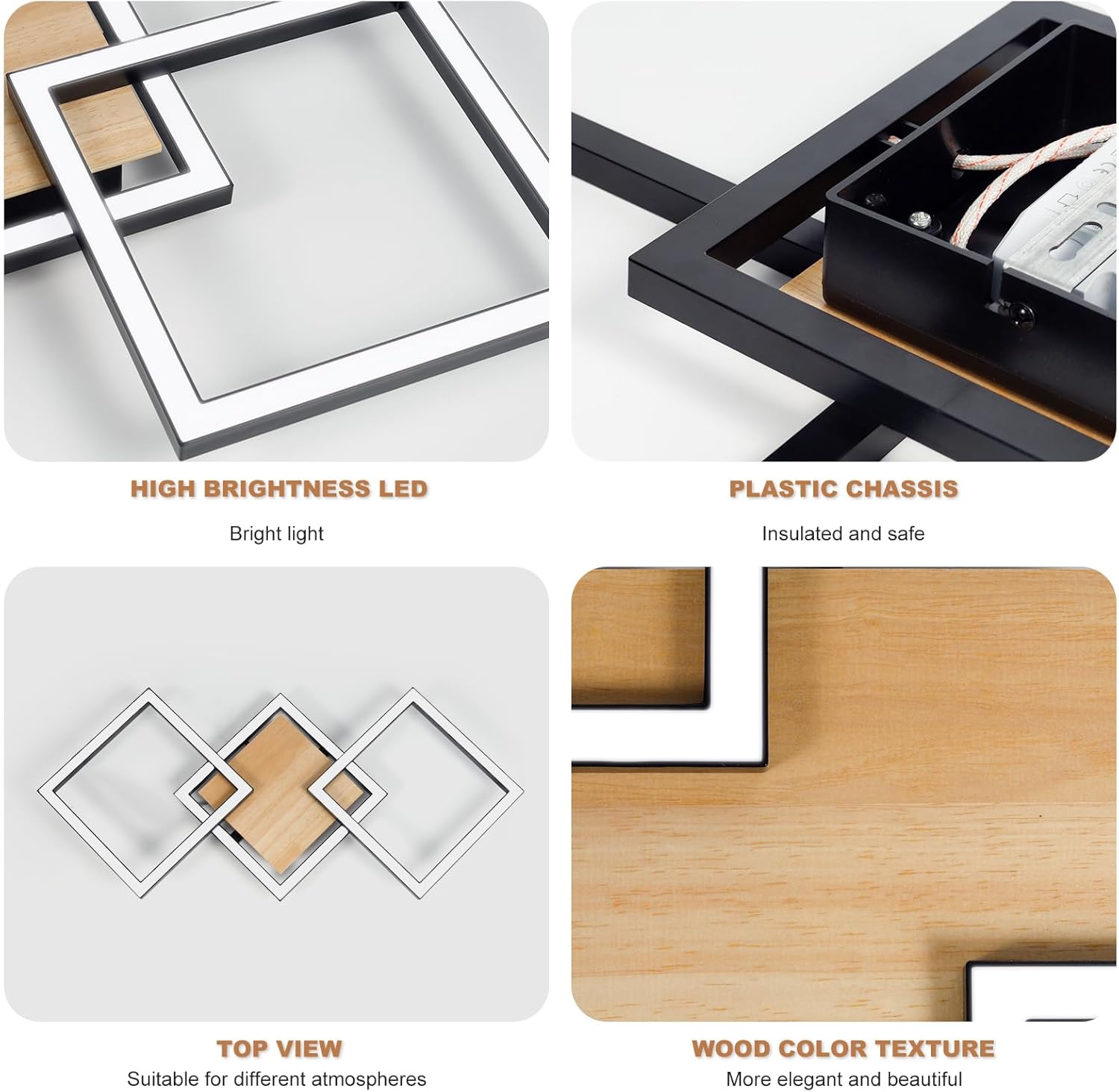 - Durable Materials: Ceiling lights for bedroom housing is made of high quality acrylic and wood, surface painting, smooth and flat, lampshade is made of acrylic, built-in LED chip light source, high light transmission, no glare, no flicker, even and stable light.