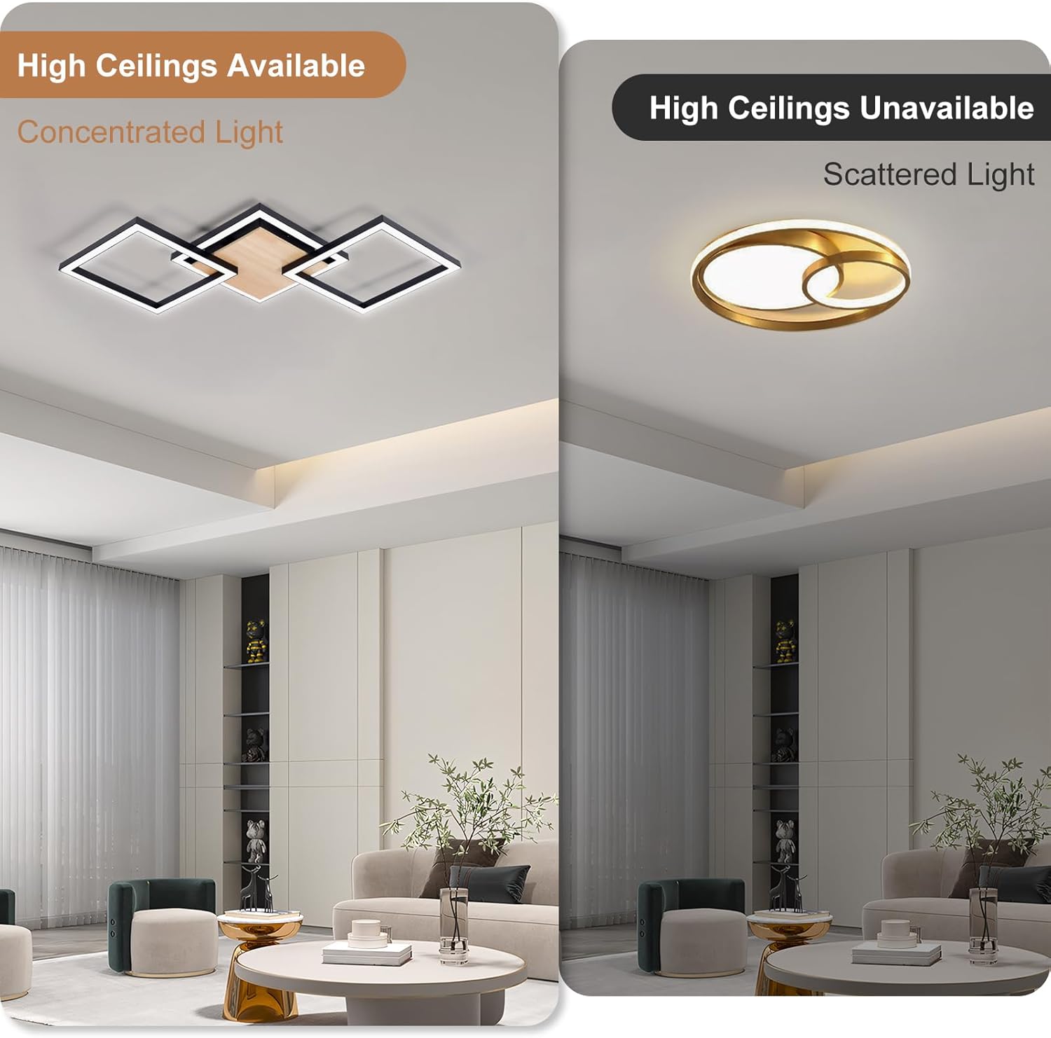 - Simple Modern Design: The appearance of the LED lights for bedroom are elegant, neat, and concise, fitting your various household decoration style. Perfect for corridor, balcony, entrance, living room, bedroom, dining room.
