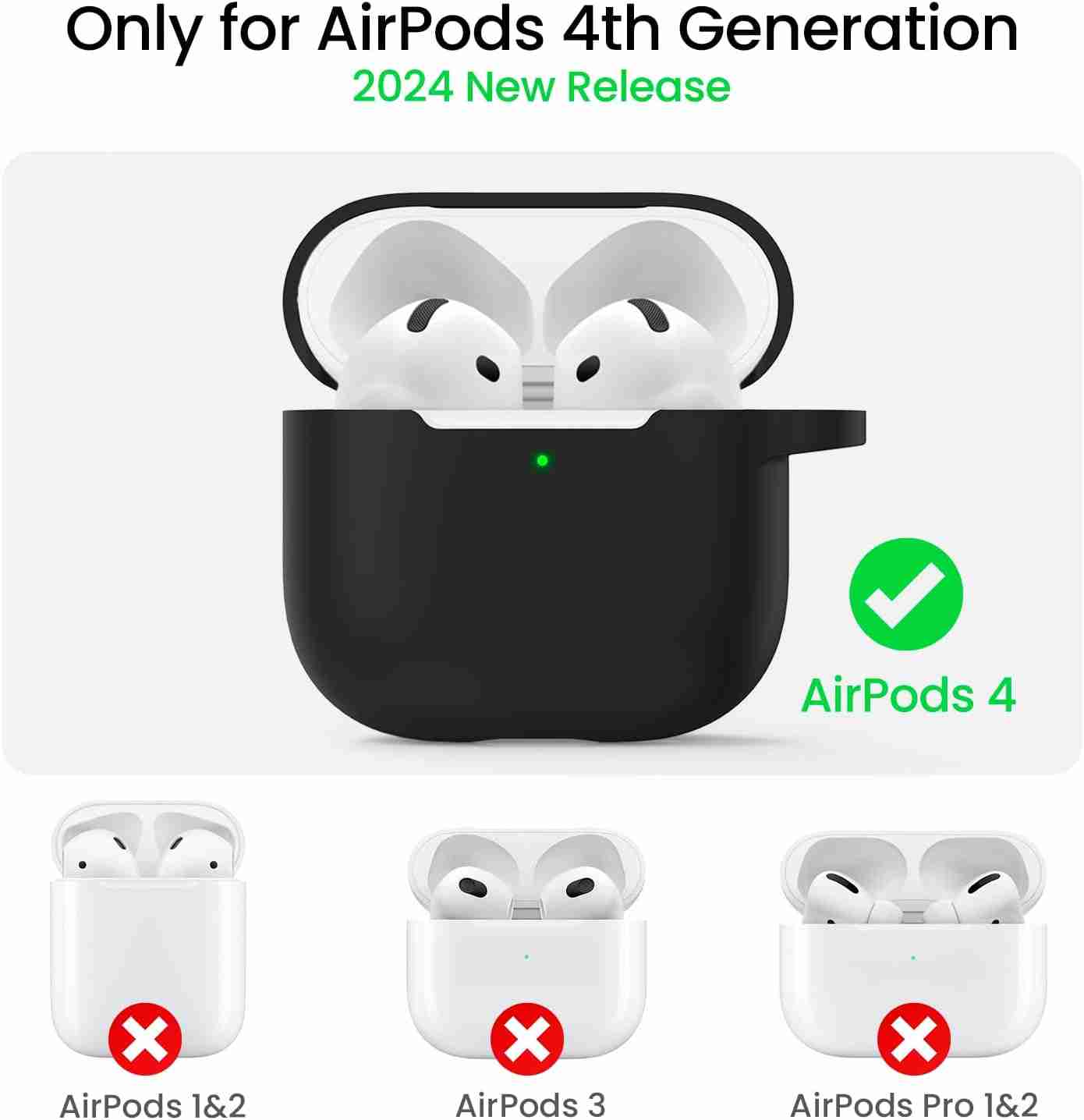 - Compatibility: This soft silicone case is specifically designed to provide a perfect fit for AirPods 4th Generation(2024 release). not for AirPods 1/2/3 and AirPods Pro