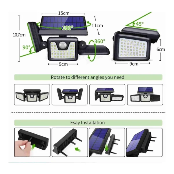 Introducing the Claoner Solar Lights Outdoor 3 Heads – the perfect solution for your home’s outdoor lighting needs! With its upgraded 128 LED solar motion sensor security lights, this product provides bright and reliable illumination that is perfect for ensuring the safety and security of your home and family.